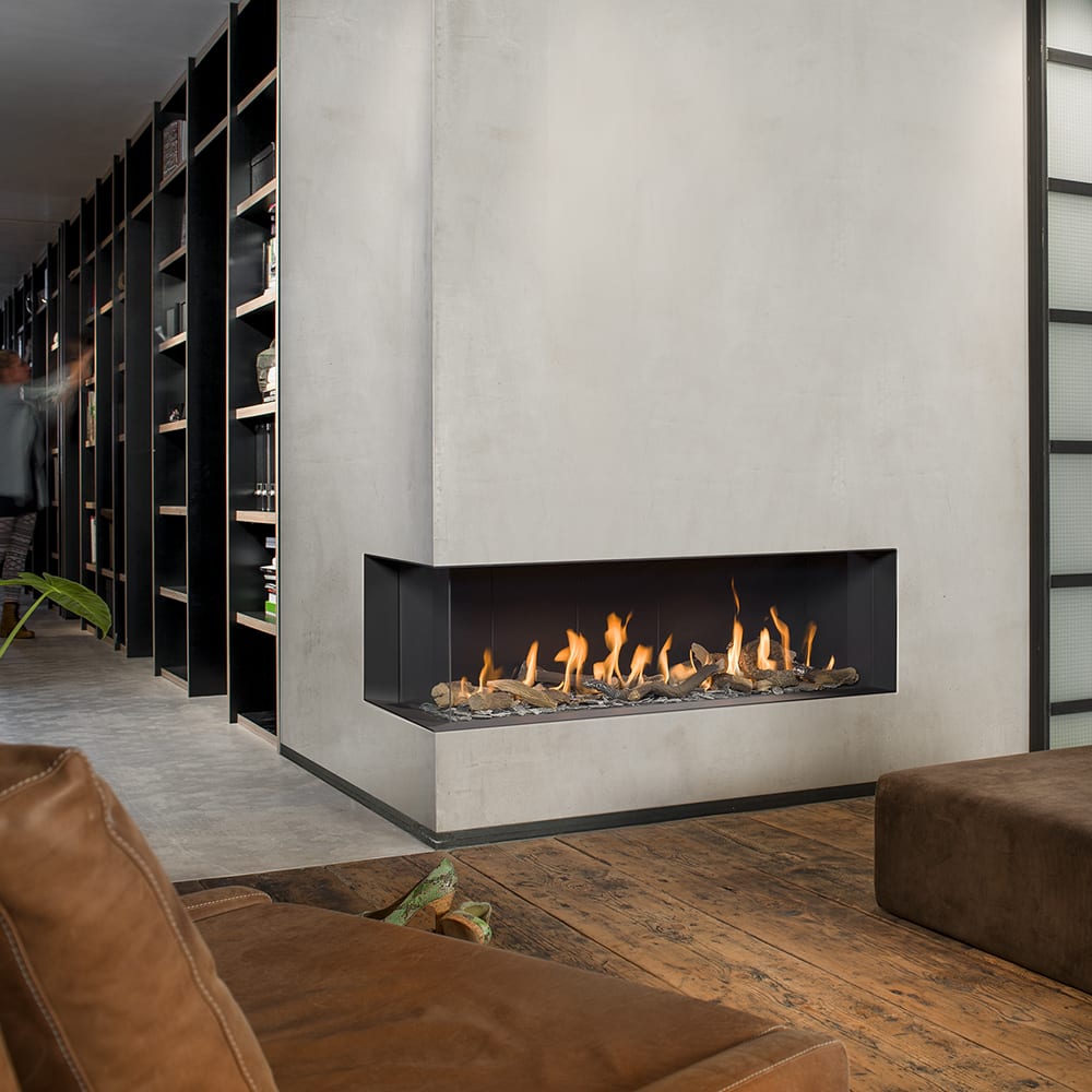 INSERT GAZ D'ANGLE L+R BELLFIRES, 10KW, POIDS 132KG, TYPE DE GAZ NATUREL, SORTIE CONCENTRIQUE 130/200, ECLAIRAGE D'AMBIANCE STANDARD OU OPTION, INTERIEUR FOND LISSE OU MIRROIR CERAMIQUE NOIR, DECORATIONS DE BRULEUR BUCHES CERAMAQIUE, CAILLOUX GRIS OU CAILLOUX BLANCS.