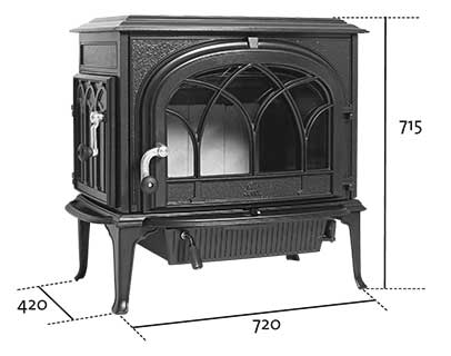 POELE ABOIS JOTUL F 500 ECO SE, OPTION AVEC ARCADE OU SANS, 8.8KW, POIDS 200KG, RENDEMENTS 82%, TAILLES DES BUCHES JUSQU'A 55CM MAX, CHAUFFE-PLAT EN PIERRE OLLAIRE, FLAMME VERTE 7* OU EQUIVALENT