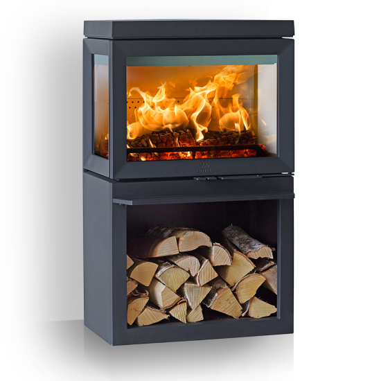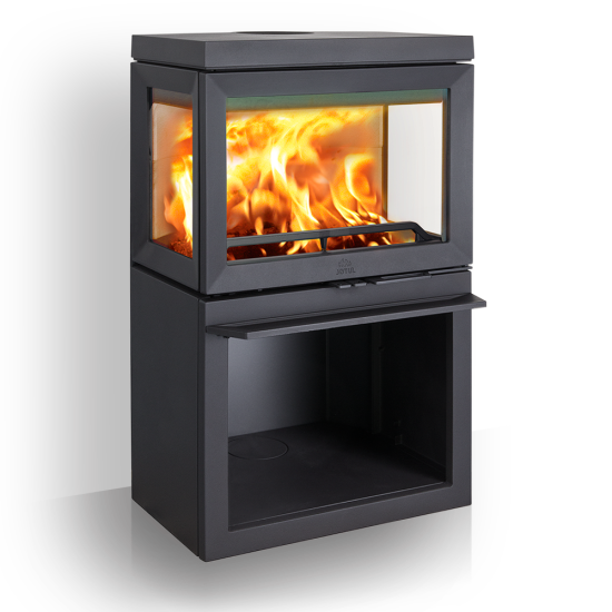 Nouvelle déclinaison pour le foyer Jøtul I 520 3 Vitres dans un écrin en fonte noire avec compartiment bûcher des plus contemporains. Le poêle Jøtul F 520 offre une combinaison unique: format horizontal, bûches de 50 cm et large vision du feu sur 3 faces vitrées.