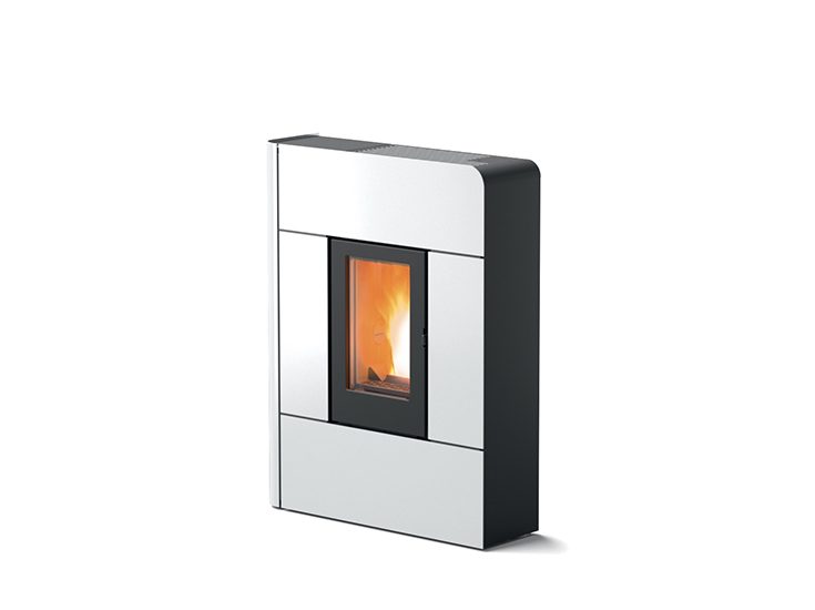 Poêle à pellets spécialement indiqué pour les espaces restreints, grâce à une profondeur très réduite (27 cm) ; caractérisé par deux flux d’air orientables librement, selon les besoins de chauffage de la pièce ; dessus en aluminium, côtés en acier peint en noir et façade en métal de couleur White, Bordeaux, Black, Bronze (ou Aluminium).