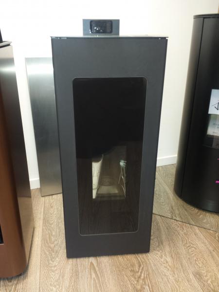 Poêle acier peint noir avec vitre sérigraphiée noire